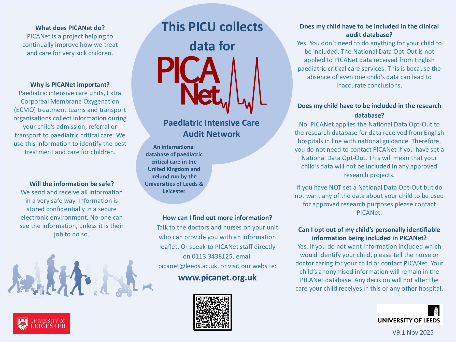 You or the child you care for can opt out of having personally identifiable information stored by PICANet. If you wish you can also stop data being included in approved research projects. The PICANet clinical audit and research database opt out policy for children, young people and parents provides more information and guidance on how to do this.